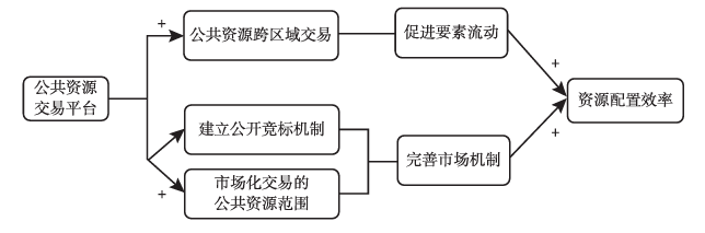 在充分竞争和完美市场条件下,要素充分流动,资源由低效率经济主体流向高效率经济主体,市场中各企业的边际产出相等,企业间的全要素生产率也趋于相等,实现资源的高效配置。然而,市场机制的不完善和政府对市场的干预,都可能引起市场扭曲,阻碍要素自由流动,产生资源误置。公共资源一端连接公共部门,承担着公共政策实施的功能;另一端连接市场主体,直接影响市场主体对要素资源的获得和使用。在实践中,公共资源交易平台凭借与政府和市场的紧密联系,一方面能够促进公共资源的跨区域流动,打破市场分割,促进要素自由流动;另一方面通过完善市场机制,降低政策扭曲引发的资源误置,促使资源配置效率得到改善。