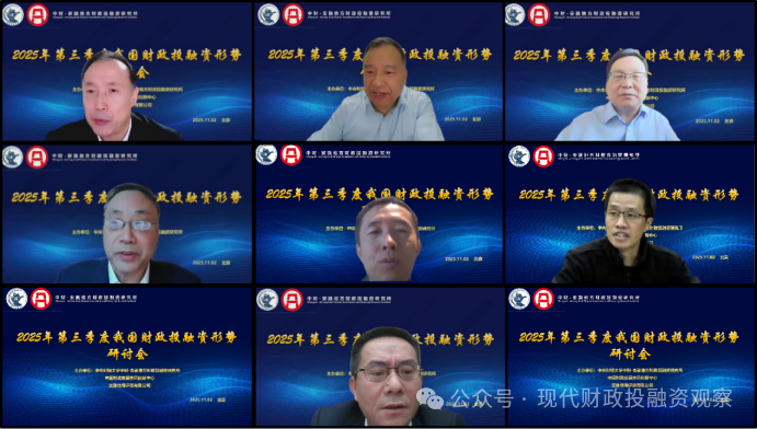2025年11月2日,由中央财经大学中财-安融地方财政投融资研究所、安融信用评级有限公司、中国财政发展协同创新中心联合主办的2025年第三季度我国财政投融资形势研讨会,在腾讯会议上成功举办。来自北京大学、中国财政科学研究院、中国人民大学、中央财经大学、中财-安融地方财政投融资研究所的专家学者,以及全国各地财税系统的专家学者和学生共200余人参加了研讨会。本次研讨会由中央财经大学中财-安融地方财政投融资研究所执行所长温来成教授主持。