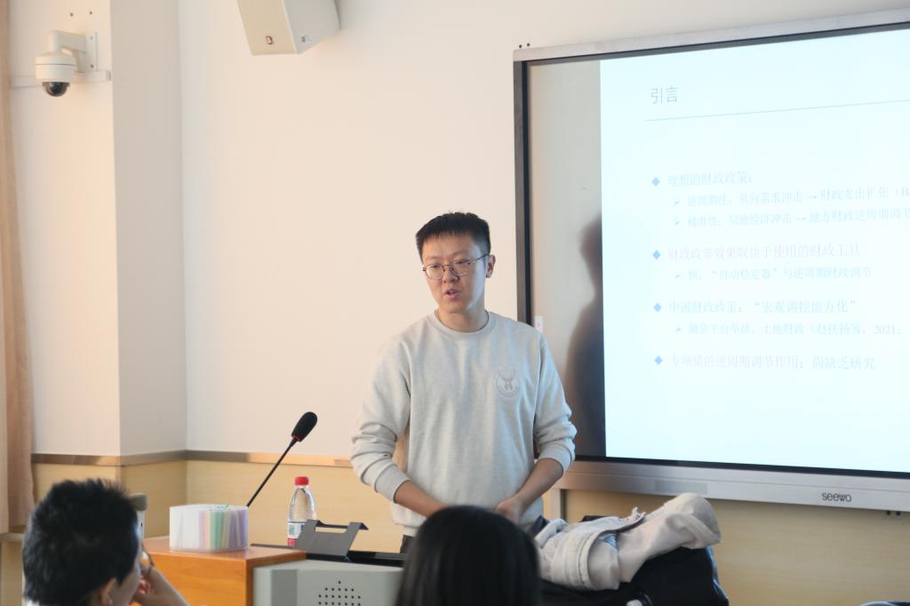 2025年11月5日下午,中国财政发展协同创新中心在沙河校区10号楼429,举办中央财经大学2025年系列学术讲座,主题为“外部经济冲击对地方政府债务的影响——基于财政政策经济稳定职能的视角”。本次讲座由对外经济贸易大学国际经济贸易学院聂卓老师主讲,中国财政发展协同创新中心阮睿老师主持,中心30余名师生参加了本次讲座。