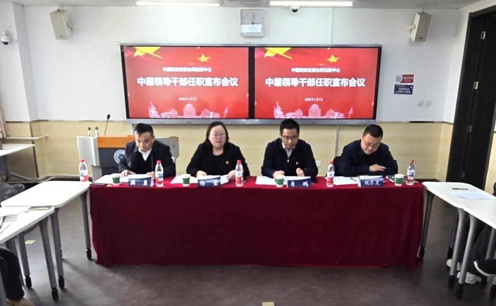 2026年1月7日下午,中国财政发展协同创新中心召开中层领导干部任职宣布会议。校党委副书记杨莹主持会议,宣布学校党委对中国财政发展协同创新中心中层领导干部的任免决定并讲话,学院领导班子成员和全体教职工参加会议。