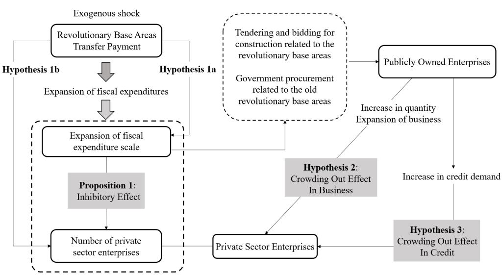 【主要发现】研究发现,由转移支付带来的财政支出扩张在短期内会降低县域民营经济主体数量,且对私营企业的影响强于对个体工商户的影响。机制分析表明,这一作用主要通过两条渠道传导:一是财政支出扩张带动公共项目和资源配置增加,公有经济主体尤其是集体所有制企业数量上升;二是相关融资需求扩大会推动信贷资源更多流向公有部门,从而对民营主体形成一定的资源配置挤出效应。进一步的异质性分析还发现,数字化水平、劳动力供给、空间条件和产业结构会影响上述效应的强弱。